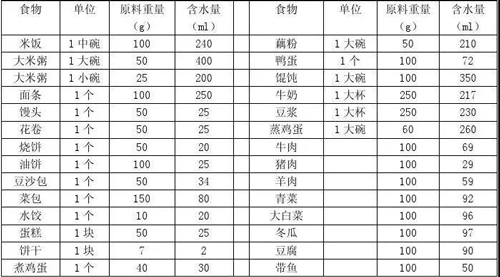出入量平衡 = 24 小時的入量-24小時的出量+不顯性失水量,其中入量為飲水量及食物含水量,這些在住院期間應已有了解。也可參照下表進行估算。